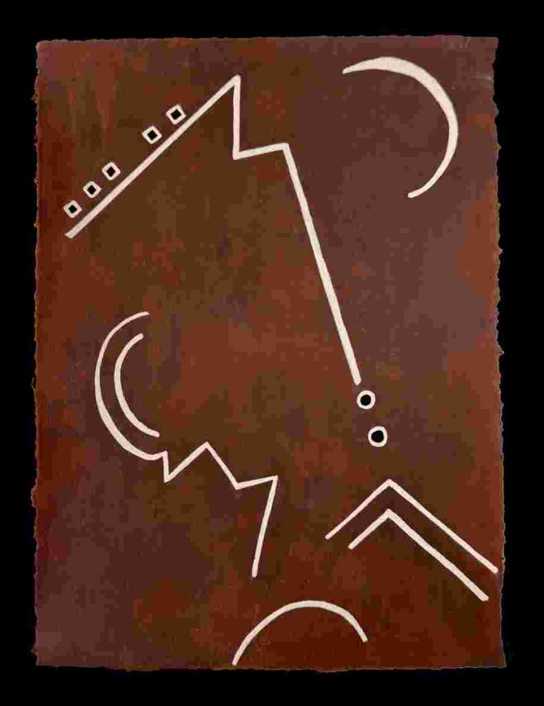 ‘Mitla’ mixed media on bark paper 6 1/2″ X 4 1/2″ © Sukanya Rahman 2013